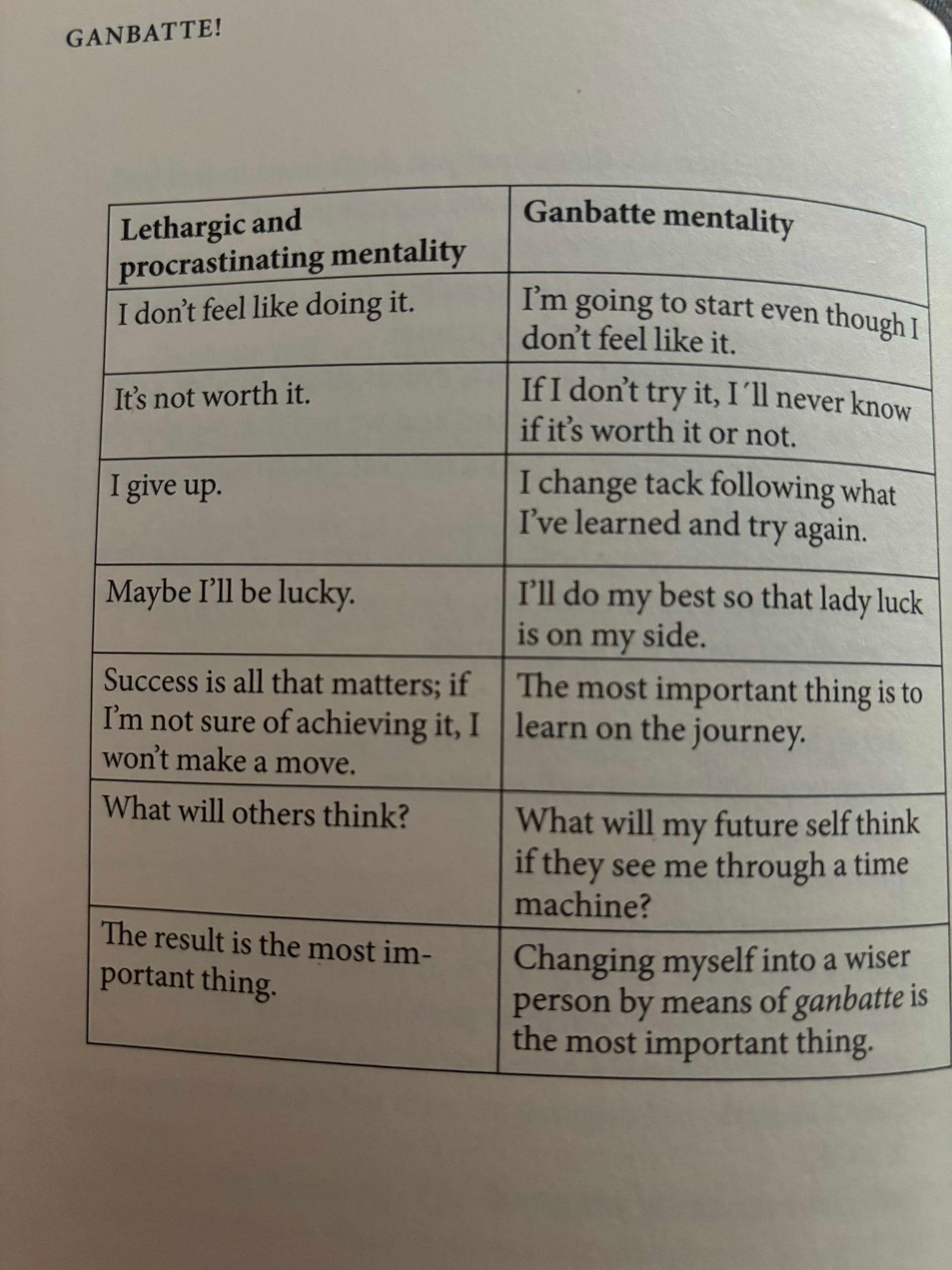 Now, here’s the part I really want to talk about: grit and perseverance, and knowing when to let go of expectations. In Bali, there were days when the current was strong, and I had to dig deep to finish the swim. And on that same trip I came across a little book on the Japanese concept Ganbatte.